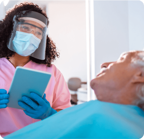 Atendimento odontológico especializado em pacientes idosos e acamados.